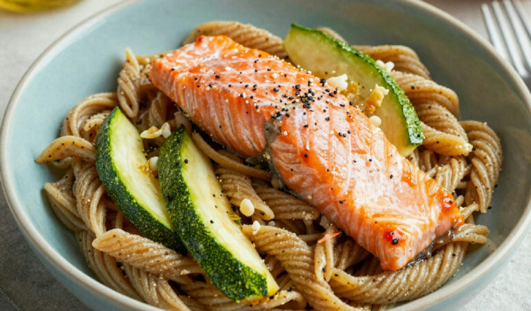 Pasta integrale con zucchine e salmone, un piatto ricco di sapore e benessere da preparare in pochi minuti