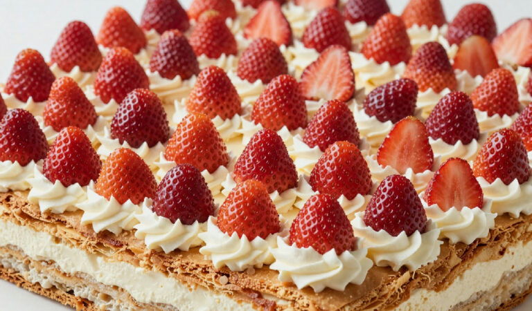Insomma, la millefoglie con fragole e crema è un dolce che, sebbene possa sembrare complicato, può essere affrontato con un po’ di pazienza e attenzione. È un dessert che porta con sé tradizione e freschezza, perfetto per stupire i tuoi ospiti e regalarti un momento di dolcezza. Tu sei pronto a metterti all’opera e provare a realizzarla? Ogni dolce ha la sua storia e la tua millefoglie potrebbe diventare un racconto indimenticabile per chi la assaporerà!