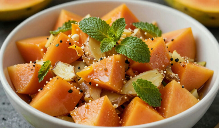 Ah, quasi dimenticavo! Questa combinazione può essere usata nei frullati. E anche in ricette di insalate. Prova a fare un’insalata di quinoa con papaya a cubetti, zenzero grattugiato e foglie di menta tritate. Aggiungi un po’ di lime per un tocco di acidità e avrai un piatto sano e rinfrescante, perfetto per l’estate. Oppure, puoi usarlo anche per un dessert: mescola yogurt naturale con papaya frullata, un pizzico di zenzero e qualche foglia di menta. Risultato? Un dessert cremoso e leggero che stupirà i tuoi ospiti. E se vuoi osare, prova a fare un sorbetto! Frulla la papaya con zenzero e menta, versa tutto in un contenitore e metti in freezer. Dopo qualche ora, avrai un sorbetto rinfrescante da gustare.